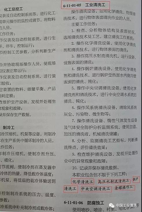 【知識】據2015版《國家職業大典》,工業清洗職業包括那些工種?